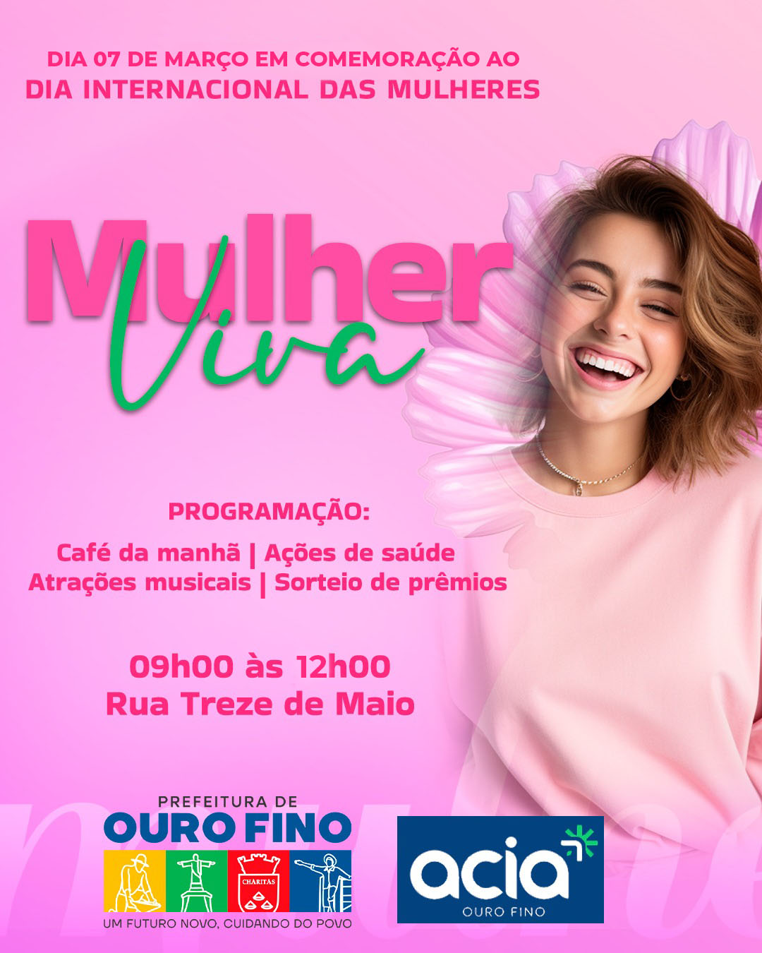 A ACIA Ouro Fino, como nos anos anteriores, tem a satisfação de participar e seguir realizando mais uma edição do Mulher Viva, um evento que já se tornou referência de cuidado, valorização e reconhecimento às mulheres do nosso município.