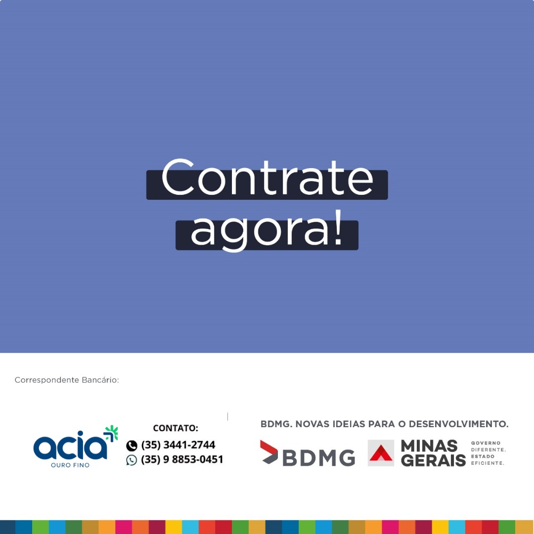 Para mais informações, ligue para (35) 3441-2744 ou (35) 8853-0451, ou venha nos visitar na ACIA Ouro Fino.